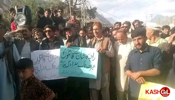 گلگت: جاوید نمبردار اور راجہ کاشان کاقتل ،ارشاد اور مشال کی جبری گمشدگی کے خلاف احتجاجی مظاہرہ