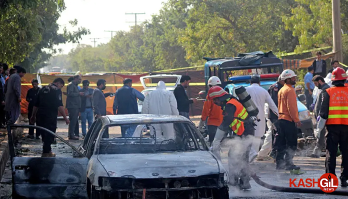 دھماکے کے نتیجے میں کم از کم 12 افراد ہلاک اور 27 ہوگئے ہیں جس کا الزام پاکستان نے حسب روایت انڈیا پر عائد کردی ہے۔