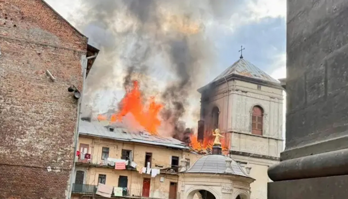 The 16th-century Bernardine monastery in the western city of Lviv, which is part of the UNESCO World Heritage Site in the city center, was damaged, according to local authorities.